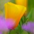 با قرار دادن یک گل دیگر در پشت سوژه اصلی خود، پس زمینه را رنگی کنید. با عکاسی از میان چندین گل دیگر، به پیش زمینه رنگ اضافه کنید.