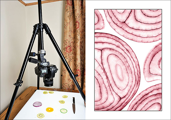 شما تنها با یک لایت باکس و یک چاقوی تیز میتوانید مواد غذایی را به عکسی هنری تبدیل نمایید. سبزیجات و مرکبات را به نازکترین حد ممکن ببرید و سپس آنها را بر روی لایت باکس قرار دهید. دوربین را در بالای آن قرار دهید و با استفاده از نمای زنده یا Live View بر روی جزئیات سوژهتان فوکوس نمایید. دیافراگم را بر f/8 قرار دهید تا عمق میدان کافی را برای عکاسی داشته باشید و برای جلوگیری از تیره شدن عکس جبران نوردهی را بر ۱+ یا ۳+ تنظیم نمایید (چراکه نور روشن می تواند دوربین را گول بزند و عکس تیره شود).
