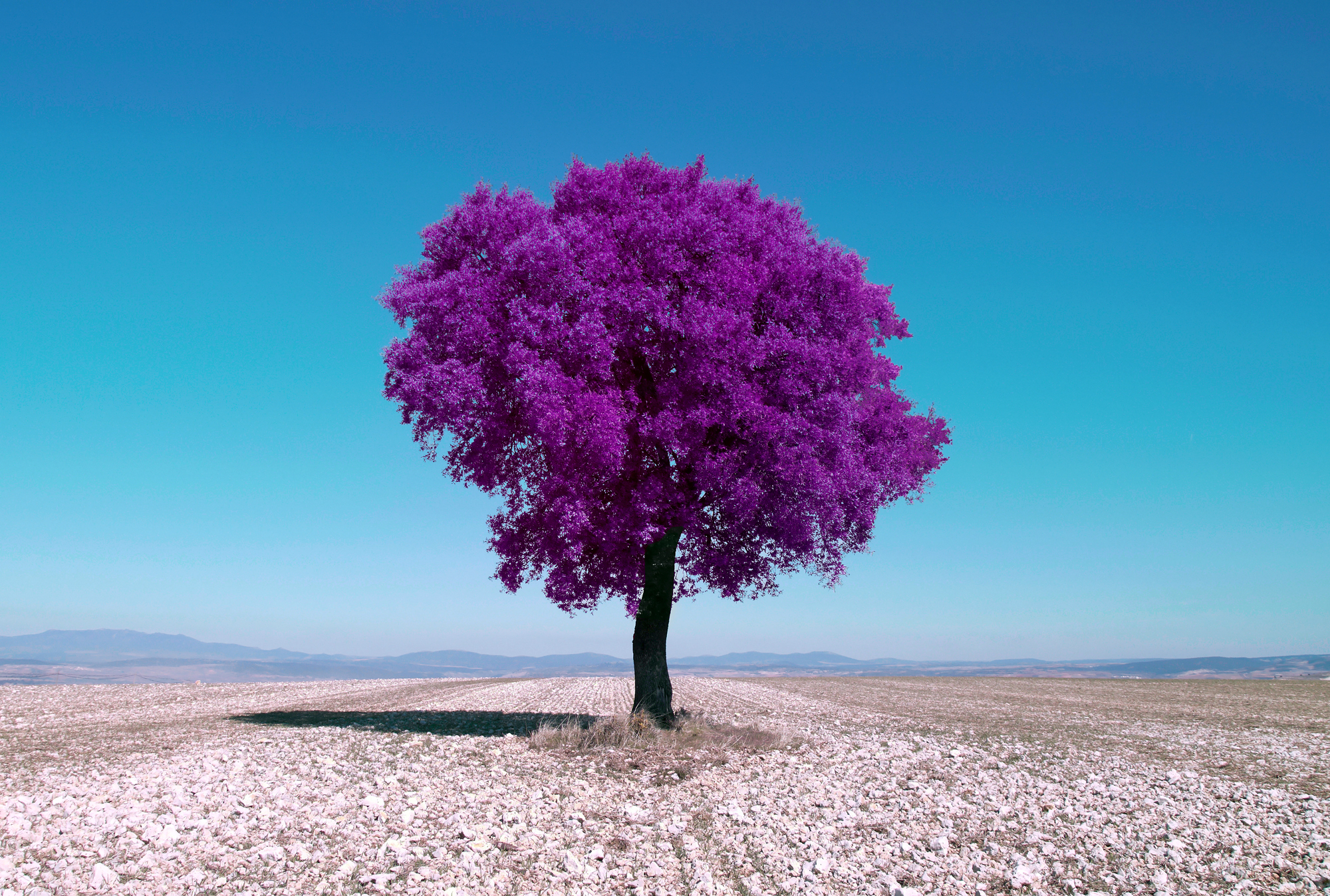 تقریبا به پایان کار رسیدیم! برای بنفش کردن رنگ درخت، ما یک لایه تنظیمی جدید یا در اینجا یک لایهی Selective Color باز میکنیم و با رنگها بازی میکنیم. نتیجهی کار من به این صورت شده است: