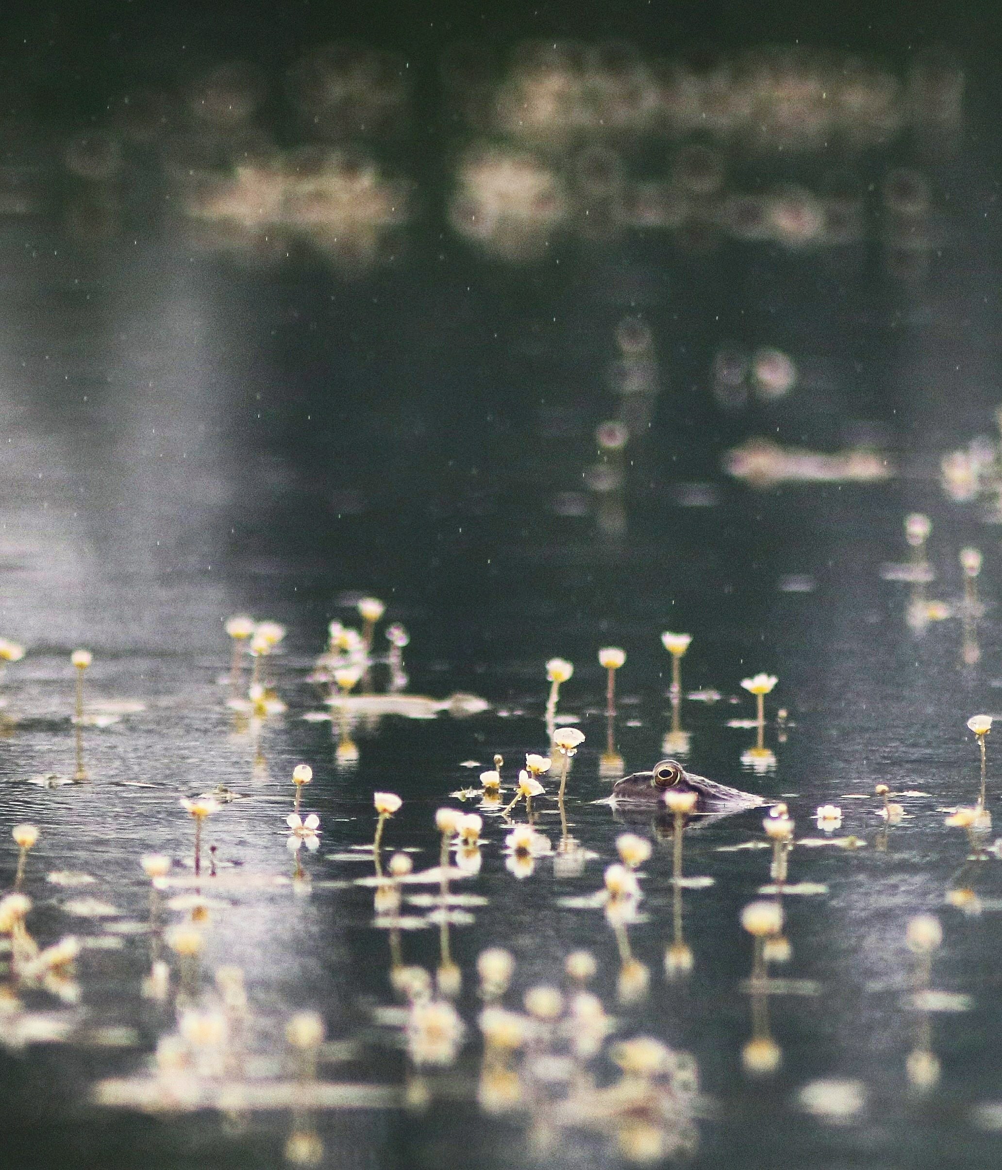 آرامش و زیبای طبیعت برکه در زیر باران